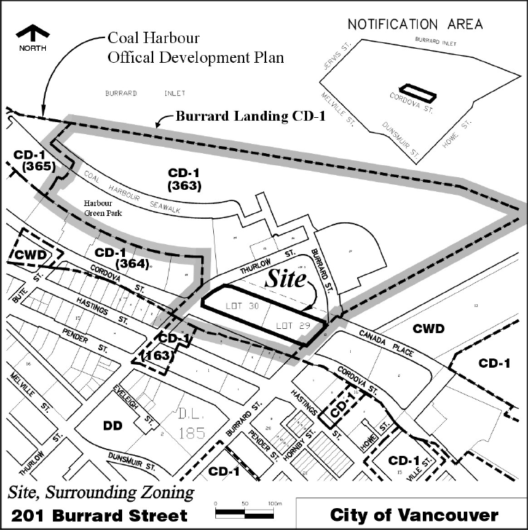 · Burrard Landing CD-1 (363) By-law No. 7679, Guidelines and Form of Development approved in November 1996