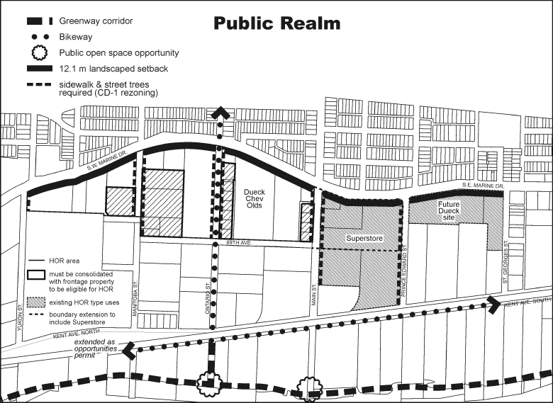 All HOR sites must have frontage to Marine Drive. Panhandle sites are generally not supported for rezoning.