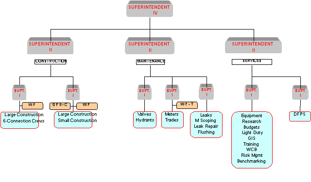 Currently the front line supervision in Waterworks Operations is provided by nine Foreman positions that are in the Foremen's Association and are not exempt positions. With the existing structure, the superintendents cannot spend an adequate amount of time in the field providing the level of supervision described above. In addition, the operation is broken down into too many separate work groups which results in competition for resources between individual crews.