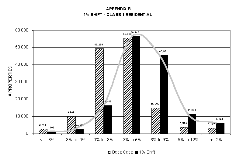 The following analysis looks at the impacts of a further shift of the property tax levy from non-residential properties to residential properties. The results of the base case and the "shift" scenario are shown graphically in Appendices B and C.