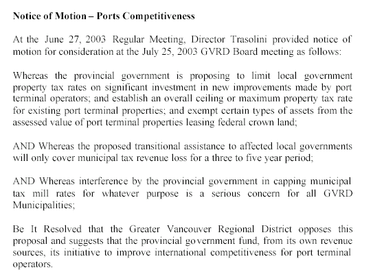 GVRD Resolution on Provincial Proposal re: Port Industry Taxation