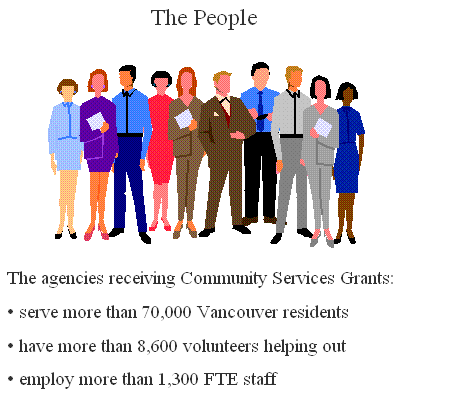 The Provincial policy and funding changes have had a profound effect on the social service environment in Vancouver and across the province, both at the individual resident level and at the non-profit social service agency level. Approximately 75% of the agencies that are funded by the City through CS Grants also receive provincial funding. Cuts in Provincial funding are affecting and, in some cases, jeopardizing the on-going functioning of many of these groups. Also, a high proportion of the people served by City-funded groups have been directly affected by the changes in Provincial policy and funding. This has resulted in increased and changed demands for services from these agencies.