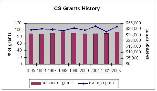 Background information on the current and past CS Grants was compiled and analyzed in the Fall of 2002. Some of the key findings are attached as Appendix B.