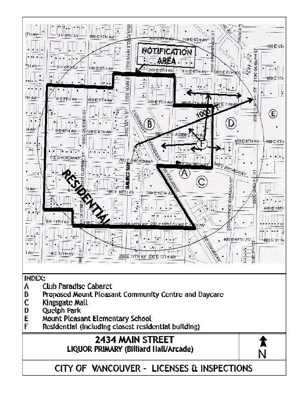 This is the first application staff have received under the new provincial liquor regulations for a non-traditional liquor licensed establishment (Billiard Hall with Ancillary Arcade). No City liquor policy or land use/business license regulations are in place to address potential enforcement issues. There are also area resident concerns and concerns with the proximity to proposed Mount Pleasant Community Centre on Kingsway. As a result, staff are recommending Council not endorse the applicant's request at this time.