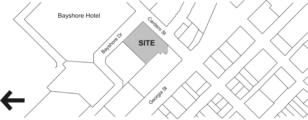 On September 13, 2001, Council approved amendments to the Bayshore Gardens CD-1 (CD-1 #321) that resulted in a reduction in the affordable housing obligation to 13% of the 750 units that were not restricted to rental housing. The affordable housing was to be developed as part of a larger building consisting of underground parking serving the hotel and the development above, retail space, a childcare centre and condominiums as well as the affordable housing. The location of the site containing the affordable housing component is noted on Figure 1.
