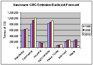 In order to set a target for emissions reductions below 1990 levels, the City first had to identify its levels of emissions in 1990. City staff worked closely with the GVRD, BC Hydro, Terasen, TransLink's AirCare Division and others to establish detailed energy consumption and emissions baselines for the past 15 years. This process is described more fully in a later section.Developing the Draft Community CCAP