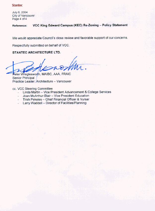 · On December 9 2003 Council instructed staff to develop a policy context in which to consider approvals for several stages of future expansion of the King Edward Campus of Vancouver Community College.PURPOSE