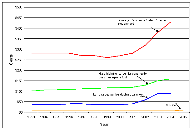 On January 5, 1993, Council increased the DCL rate to $6.18 per square foot particularly in order to reflect inflation in construction costs.