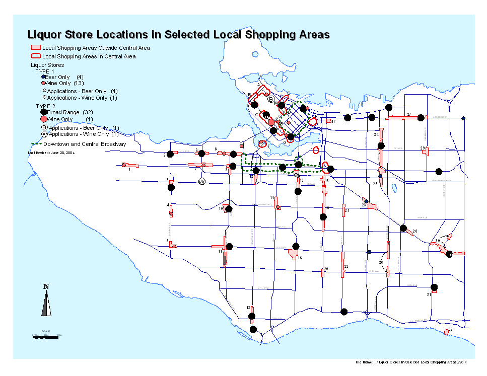 In April 2003, in response to changes to Provincial regulations that provided for more liquor retail outlets, City Council adopted policy that divided liquor stores essentially into two types: beer only/wine only, and broad range (i.e. mixed product, with or without spirits). The former may be considered anywhere in the city, subject to guidelines requiring a 150 m. separation from other liquor stores (and from family-oriented uses like parks, schools, etc.). The latter, broad range stores may only be permitted where they currently exist.