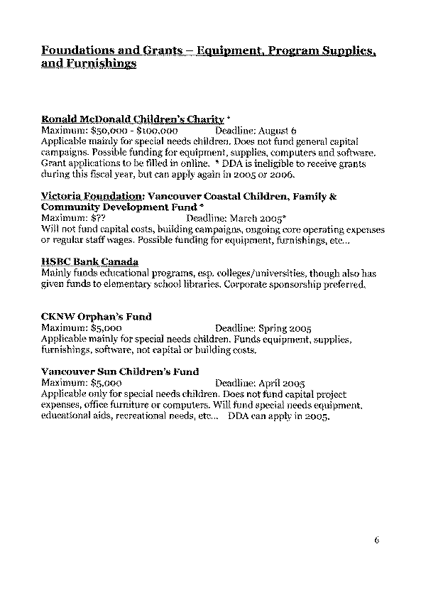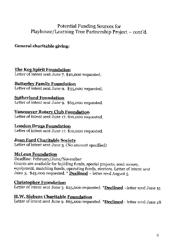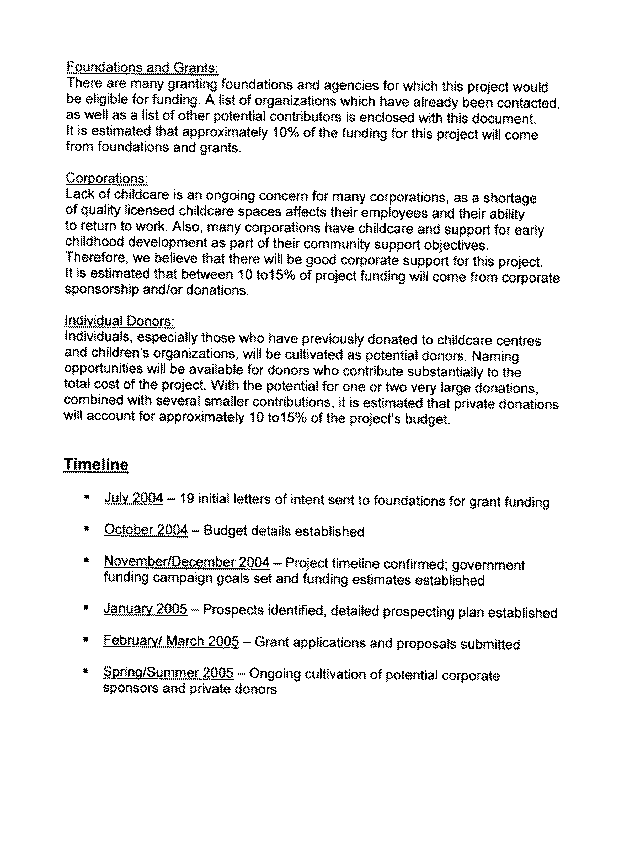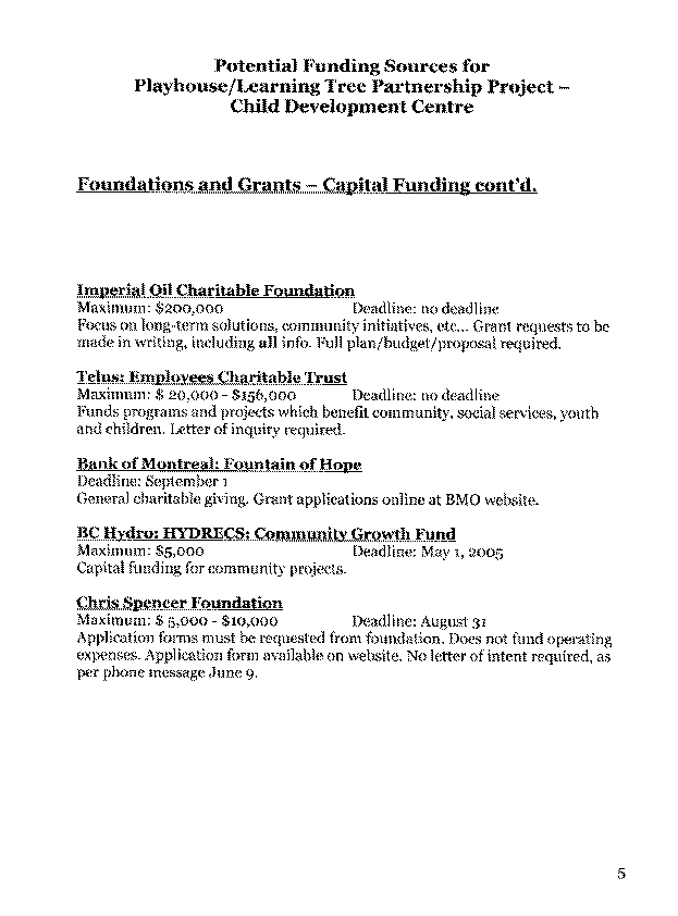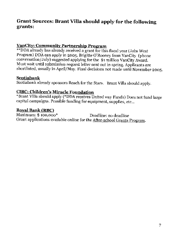 Developmental Disabilities Association, a non-profit, charitable organization, has a long-standing capacity to raise funds from the private and public sector. It has committed to a fundraising campaign to secure the additional capital required for this project, along with Brant Villa Daycare Society. APPENDIX A provides an outline of the fundraising plan and potential funding sources.