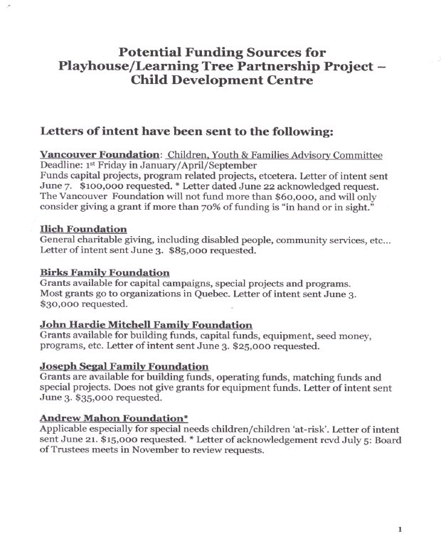 Over the next two years, the two non-profit societies and the City will work toward completing a full funding strategy for the capital costs of new construction. Developmental Disabilities Association, in cooperation with Brant Villa Society- Learning Tree Day Care, has prepared a fundraising plan (APPENDIX B) to seek the remaining funding necessary for this project.