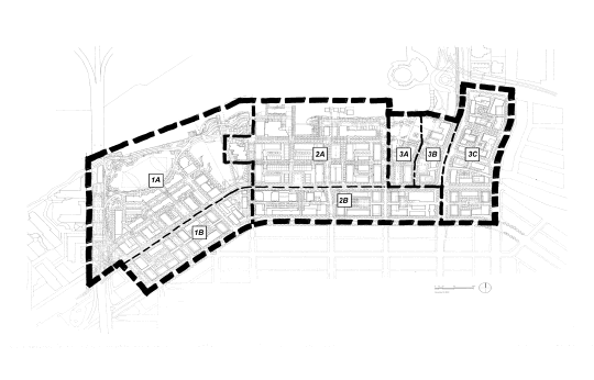 Approximately 50 acres of the Plan area - north of 1st Avenue between Cambie and Quebec Streets and identified as sub-areas 1A, 2A and 3A in the diagram above - are owned by the City and held in the Property Endowment Fund (PEF). This report refers to these lands as the "PEF lands". The balance of the sites in the Plan area, are owned by private interests (1B, 2B and 3C) but include two smaller sites owned by the PEF and one owned by Translink (3B). These sub-areas are referred to in this report as the "private lands".