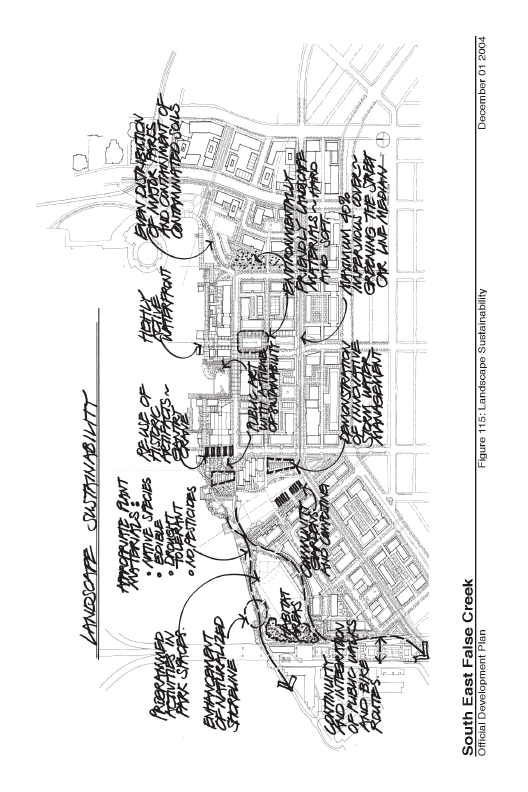 In July 2004, Council approved the following new policy for SEFC: "THAT the SEFC ODP include specific sustainability goals, targets and indicators and require tracking/monitoring of performance with regular report out - for example, energy consumption and material consumption per capita - and commit necessary funding to do this; cross referenced with the GVRD sustainability model."
