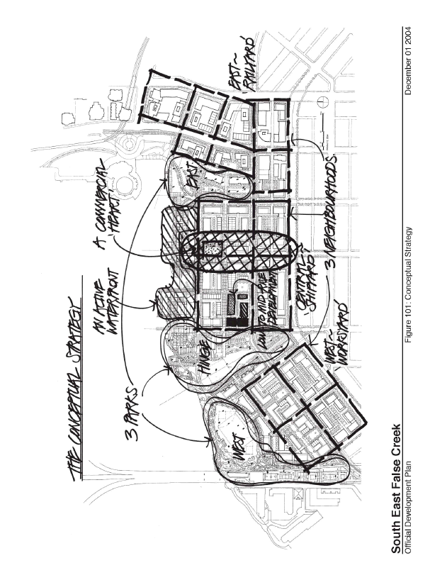 South East False Creek is envisioned as a predominantly high density residential neighbourhood in which a mix of other uses will result in a community where people live, work, play and learn; a neighbourhood that has been designed to maintain and balance social equity, livability, ecological health, and economic prosperity, so as to support choices to live in a sustainable manner.