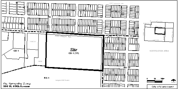 In March 1969, Council adopted Bylaw No. 4412, designating the Langara College site as a Comprehensive Development District (CD-1) to permit College and recreational uses. Council has subsequently amended the bylaw in 1982 and 1995 to accommodate past Langara expansion proposals. In November 2004, Council approved a text amendment to provide for the replacement Library related to the current expansion proposal, increasing the total allowable floor area to 50,599.4 m2 (544,665 sq. ft.).