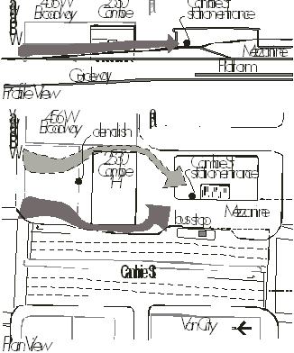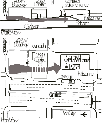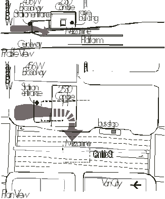 The current design for the Broadway station has the tracks and platform located under Cambie Street between Broadway and 10th Avenue with the mezzanine located under 10th Avenue. The entry hall is located on the edge of the 10th Avenue parking lot. The current station design does not physically interfere with the existing Heritage building. The following illustrates how the needs of pedestrians, transit connections, and street requirements would be accommodated with the proposed station design, including a new pathway being added within the narrow gap behind the heritage building.