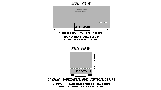 (c) mark and maintain the container with DOT Type C2 red and white reflective tape, or equivalent tape satisfactory to the City Engineer, by taping: