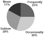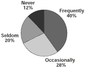 In a telephone survey of 1,000 citizens conducted for the Task Force in the early fall of 1996, the majority of city-wide respondents felt that Vancouver was noisier today; not surprisingly, even more of those living in the West End and Downtown felt this way (Figure 3 and Figure 4). City-wide, about one quarter of the sample (Figure 5 and Figure 6) said that noise was a frequent problem and about one third said it was occasionally a problem. Again, not surprisingly, those living in the West End and Downtown areas reported noise to be a greater problem than it was reported to be by the City-wide sample. Overall, most citizens are bothered by noise, at least some of the time.